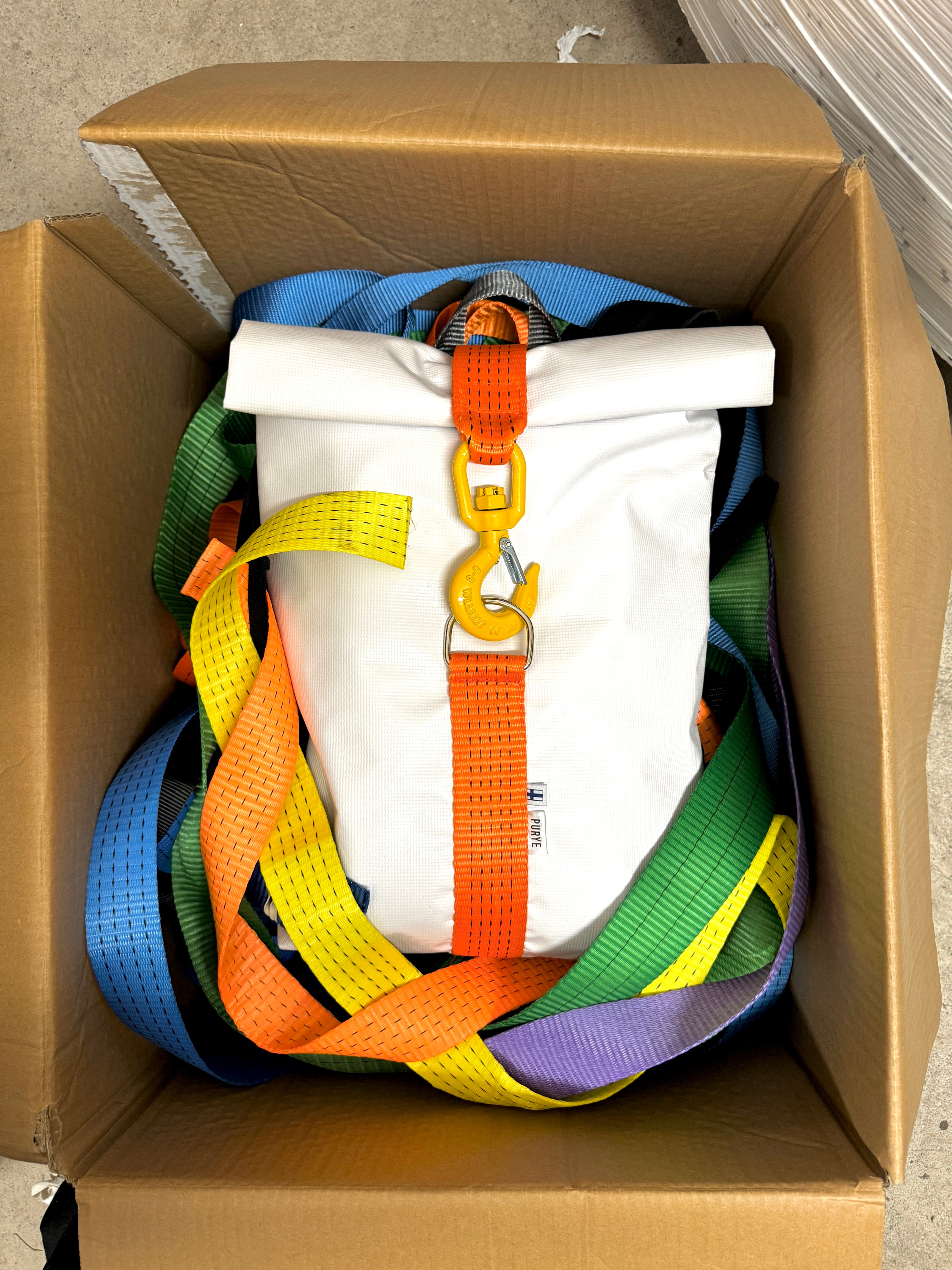 PURYE x Haklift tuotteissa olemme käyttäneet hakliftin hukkapaloja kuormaliinoista eri käyttötarkoituksiin.